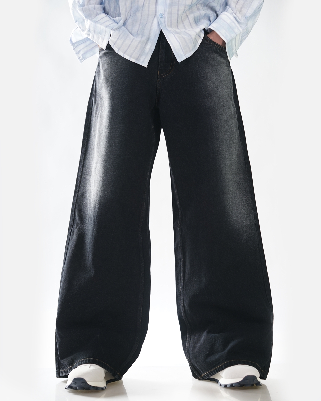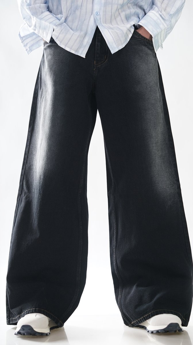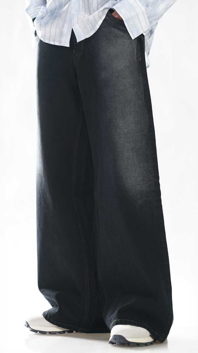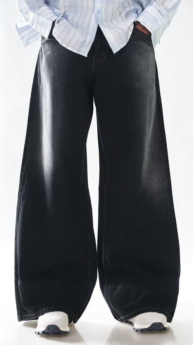 WIDE LEG WASH BLACK JEAN